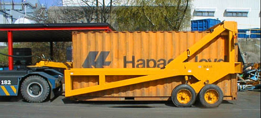 Spesialvogn for flytting/frakt av 20’ containere. Brukt på diverse industri og havneanlegg. Det er levert totalt 4 stk. vogner til forskjellige anlegg bare internt i Elkem konsernet.